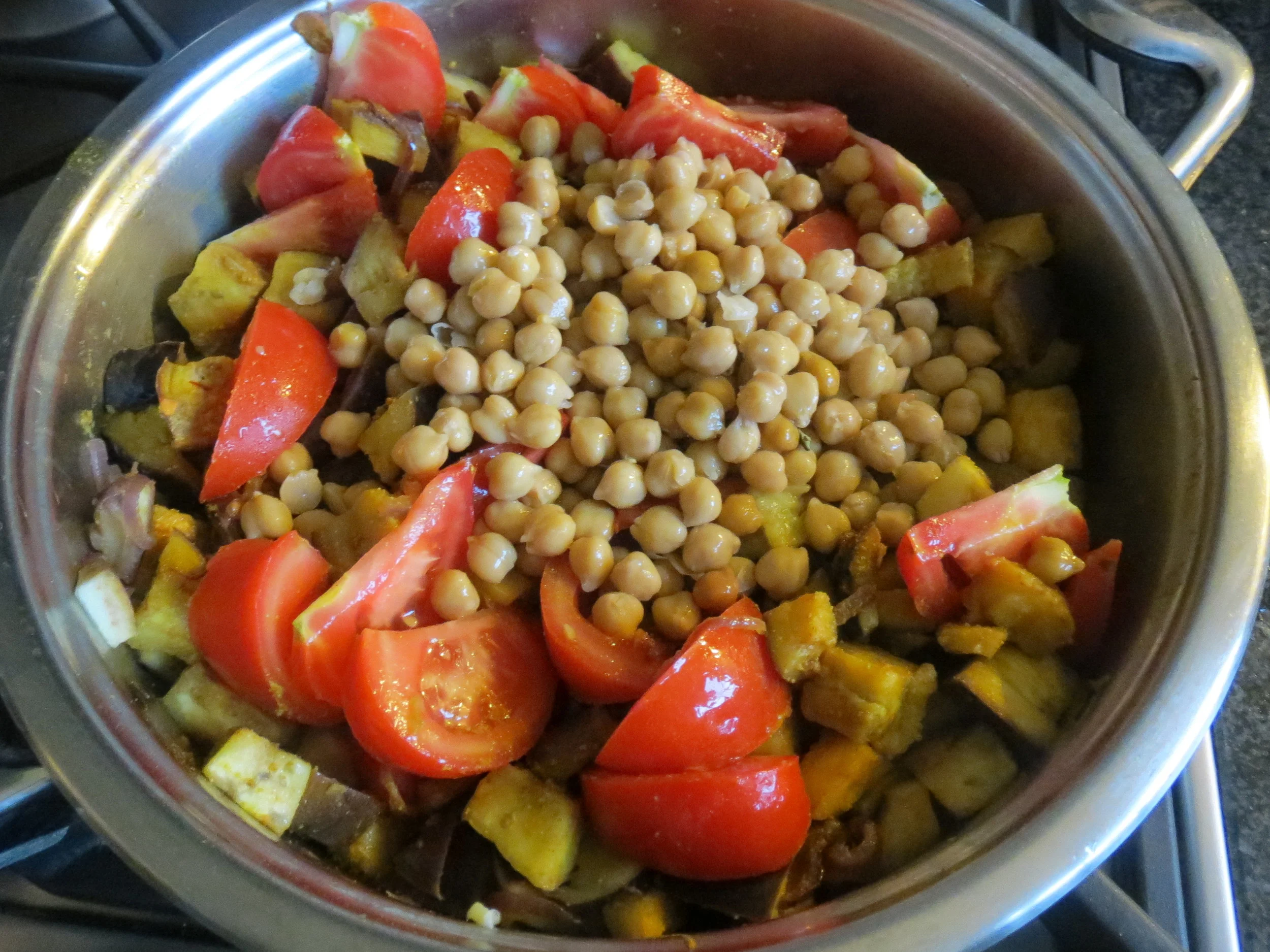 - add chickpeas, tomatoes and sultanas and again cover until all ingredients and soft and fragrant